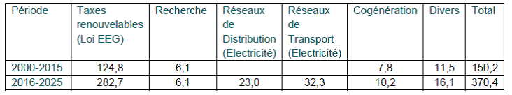 Coût de la transition énergétique allemande, en m i l l i a r d s d’euros (Université de Düsseldorf, 2016)